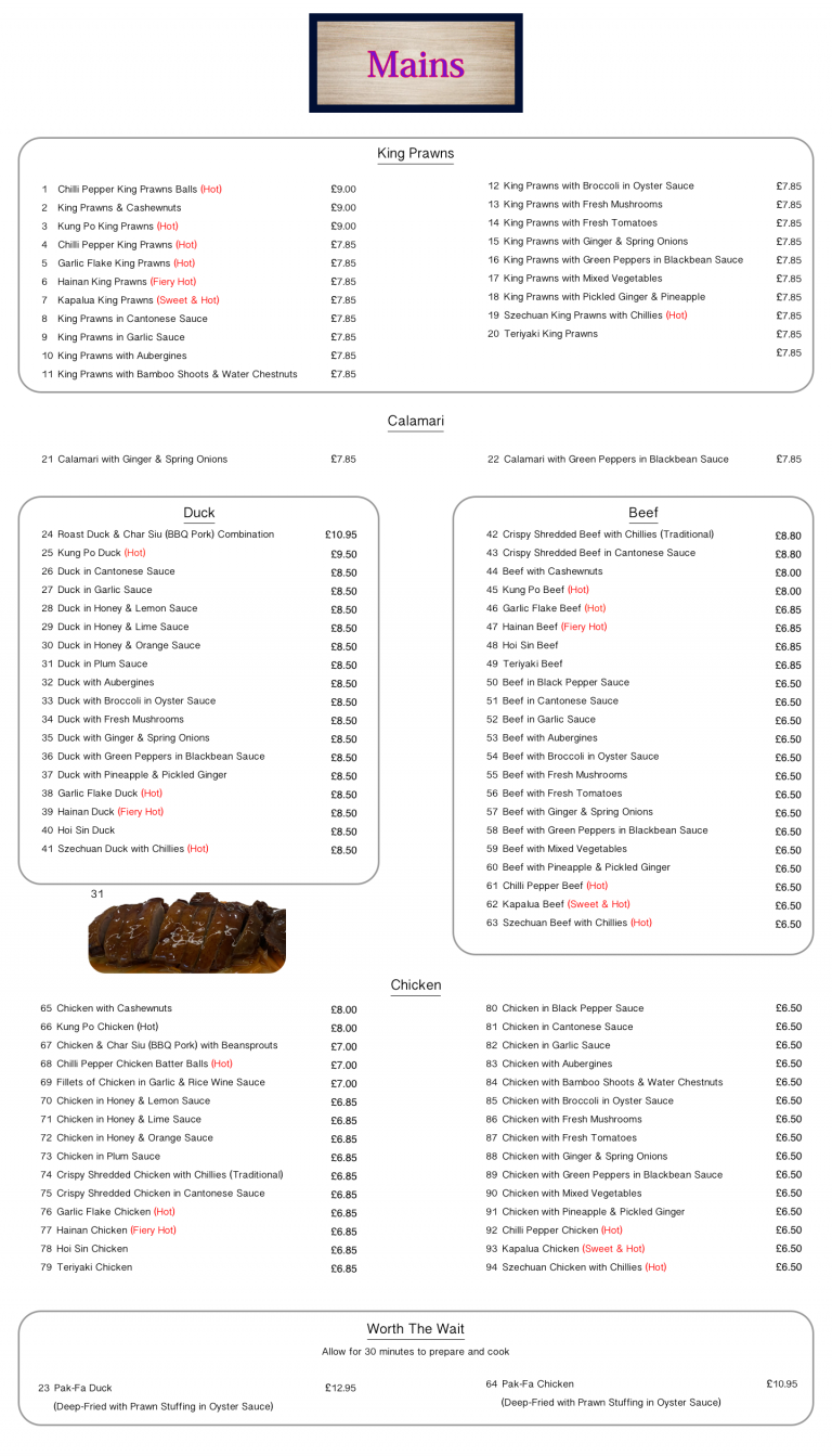 | 184 | Beef Loh-Fan | £7.30 |